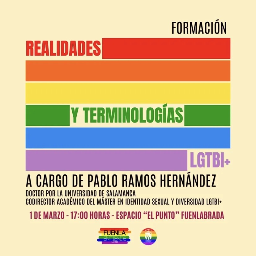 El día 1 de marzo de 2025 se organizó la actividad formativa Realidades y terminologías LGTBI+ desde la Asociación Fuenla Entiende LGTB de la que fui el formador.