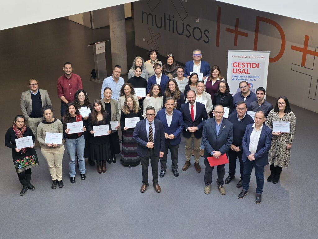 La Universidad de Salamanca ha celebrado el acto de entrega de diplomas a los 26 titulados del Programa GESTIDI-USAL, iniciativa formativa orientada a la capacitación especializada en gestión de la I+D+i, innovación y transferencia de conocimiento. El programa se desarrolla en colaboración con el Instituto para la Competitividad de Castilla y León (ICECYL), entidad que respalda esta formación dentro del marco de la Estrategia RIS3 de la comunidad.